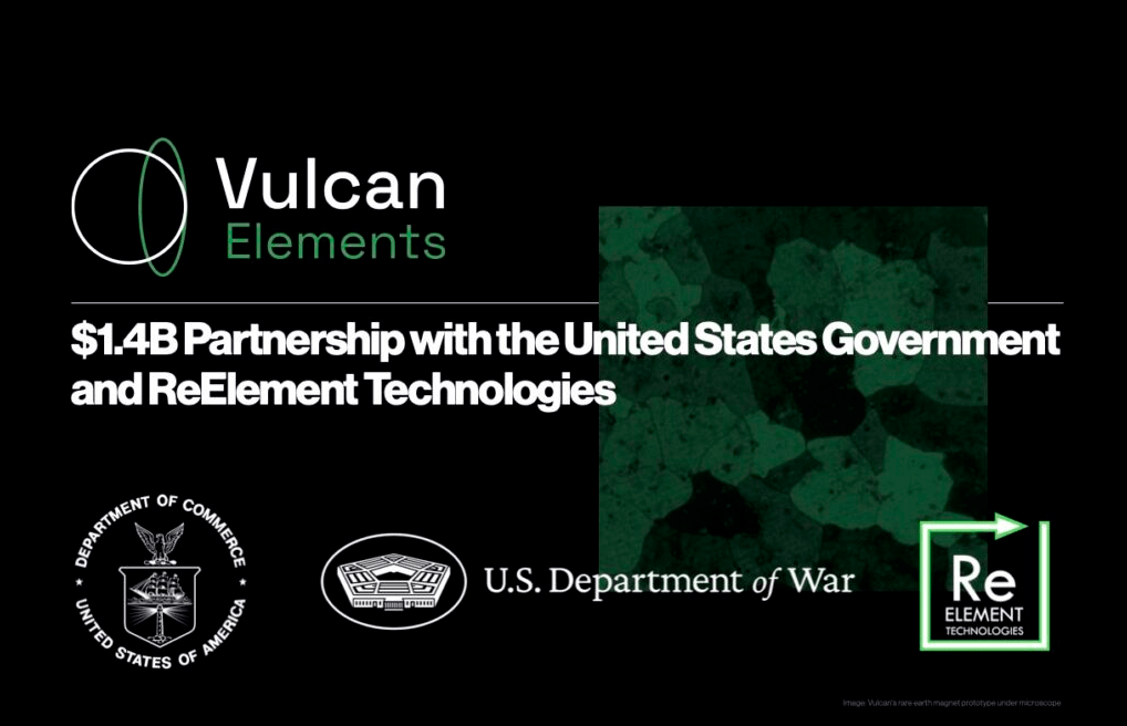 - In parallel, the administration signaled a sovereign-adjacent industrial strategy around critical minerals, highlighted by a $1.4B rare-earth magnet partnership involving Vulcan Elements and ReElement, including $700M in conditional loans (DoD/OSC) and a $50M Commerce equity stake (plus warrants), targeting up to 10,000 metric tons of NdFeB magnet material