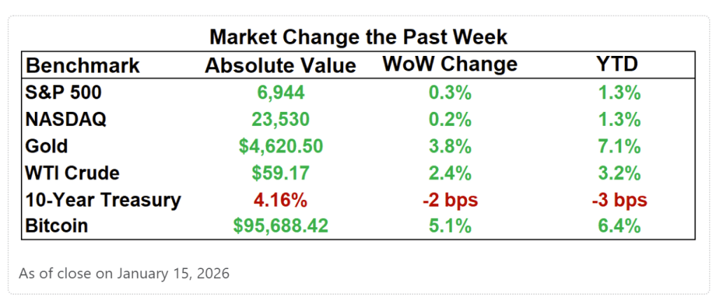 U.S. core CPI rose 2.6% in December, below consensus, with shelter, food, and recreation higher and used cars lower. In response, markets opened steady, and the base case remains a Fed hold. In D.C., Fed Chair Jerome Powell confirmed he is under a criminal probe tied to tensions with President Trump. Turning to tech, Oracle faces a bondholder lawsuit alleging it failed to disclose plans for $38B of AI-related debt following a $300B OpenAI deal, pressuring bond prices and pushing yields higher. Nvidia received formal Trump administration approval Tuesday to export H200 chips to China under third-party reviews, export caps, and strict non-military-use conditions, and separately hired Google veteran Alison Wagonfeld as its first CMO as quarterly sales reached $57B. Finally, Meta began cutting 1,000+ jobs in Reality Labs (~10% of staff) as it reallocates spend from metaverse projects toward AI wearables and AI-driven phone features.