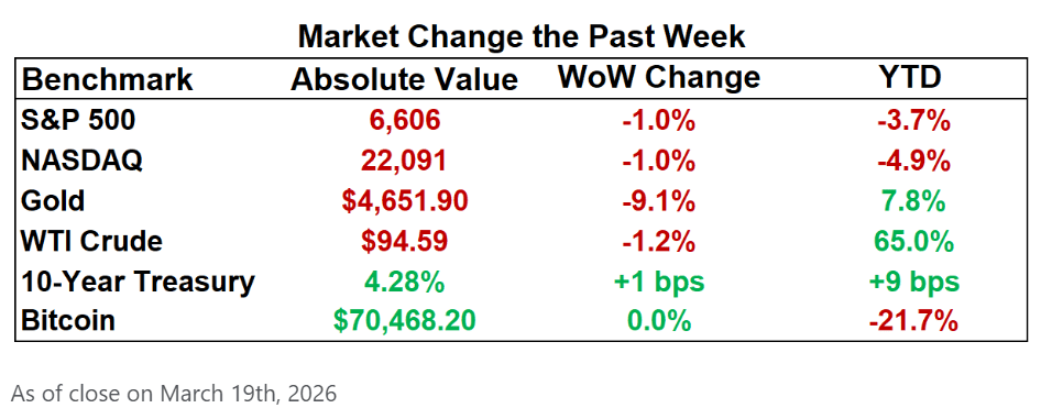Markets opened on edge as the Fed voted 11-1 to hold rates at 3.5%-3.75%, pointing to sticky inflation, mixed labor data, and Iran-war uncertainty, while Fed Chair Jerome Powell warned that there is “effectively zero net job creation in the private sector”. January PCE met expectations at 2.8% headline and 3.1% core, while Q4 GDP was revised down to 0.7%. Meanwhile, President Trump is reportedly seeking de-escalation in the Middle East after strikes hit major energy assets, sending Brent above $113 and Dubai crude to $166 as Hormuz disruption squeezed Gulf flows. In tech, Meta is weighing layoffs affecting more than 20% of staff to help fund a $600 billion AI data center; Dell cut roughly 10% of its workforce despite strong AI server demand; Crypto.com is reducing headcount by 12% amid an enterprise-wide AI pivot; Amid widespread layoffs, take a look at how Tesla CEO Elon Musk and Nvidia CEO Jensen Huang have responded. On Thursdays, WSJ reported Jeff Bezos is raising a $100 billion fund to acquire manufacturers and deploy AI automation at scale. On the policy front, Sen. Mark Warner is probing a reported $10 billion Treasury fee tied to TikTok’s $24 billion U.S. sale, while the SEC is reportedly considering ending mandatory quarterly earnings reports in favor of semiannual reporting.